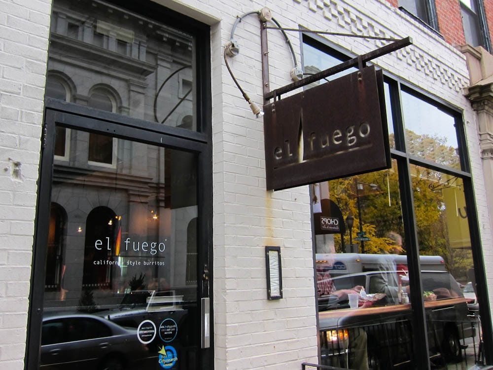 As we approached the expanse of green lawn at The Mall, we checked our phones for a place with vegetarian options. I figured Rich would want a Philly Cheesesteak sandwich, however he found a Mexican restaurant, called El Fuego, which promised authentic California-style burritos. The food was excellent and just what we needed before heading out to the historic sites.