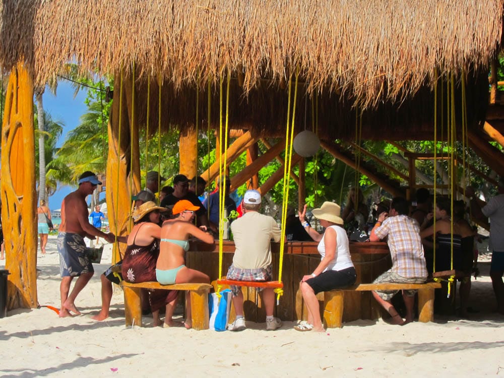 From there we rounded a bend toward Playa Norte. The modest-sized North Beach was flanked with luxury condos and hotels and behind these the waterfront was populated by the expected sunbathers. It was a cozy and pleasant setting, filled with tourists happily sipping drinks on lounge chairs under palapas, with festive music emanating from the several restaurants that anchored the parties.