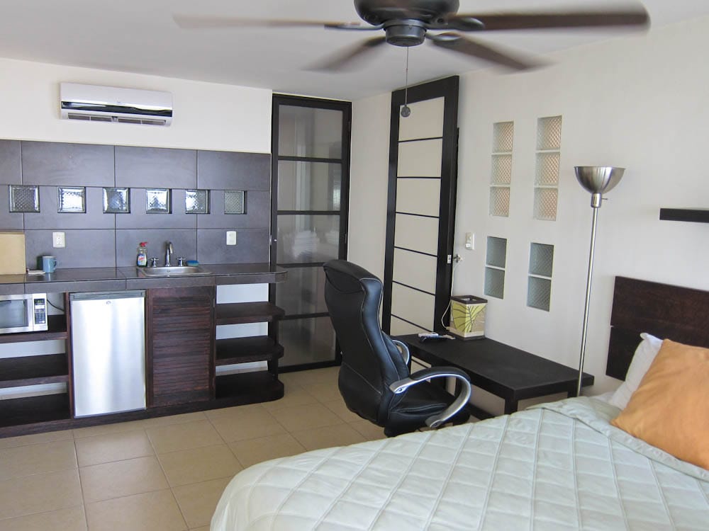 Then came our second surprise. The entry gate was locked! Although its’ an extended stay hotel, where was the manager, and why would the entrance keep its’ visitors from entering freely? In a fit of over-reacting, I had visions of losing our deposit and trying to find a hotel for the night so we could regroup. We’d selected this place carefully so I was panicked and bummed. Maybe you’ve been there before, when you hit crisis mode and you question your every move.