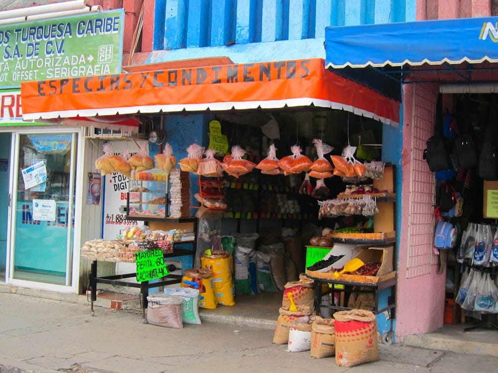 Putting our principles aside we decided to go there because they’re a familiar retail face. Since downtown Cancun is predominantly Spanish-speaking, we figured that this familiarity might offset the potential challenges of shopping. Turns out this was a good move, since Mexico uses the metric system too, so your food is sold in pesos per kilo and such. Maybe I was jet-lagged, but exactly what are you spending in U.S. dollars when you see a sign that reads, “ONIONS…$15 pesos/kg”??