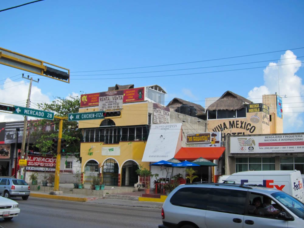 Emerging from the air conditioned building, the moist 80-degree air hit us like a blow dryer. Ahhh, warmth! We were welcomed by a myriad of transportation peddlers, and twenty minutes later were in downtown Cancun.