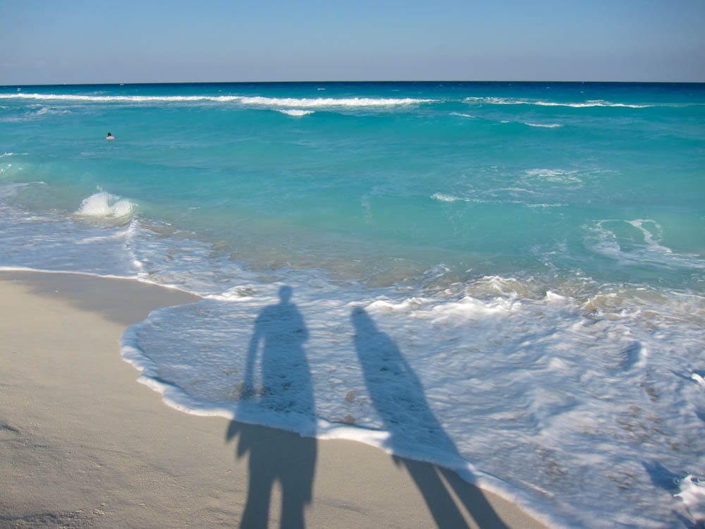 The sun was still out in full force, but a gentle breeze kept the temperature just right. We were even pleased to see a banos (restroom) on the edge of the beach, as that’s the first one I’ve seen in any public place. We were all set to relax on some lounge chairs, but noticed they were inexplicably chained together in a pile, with perplexed sunbathers sitting on the sand around them. We’ve noticed that tourist-deterring oddities like this occur at random throughout Cancun.